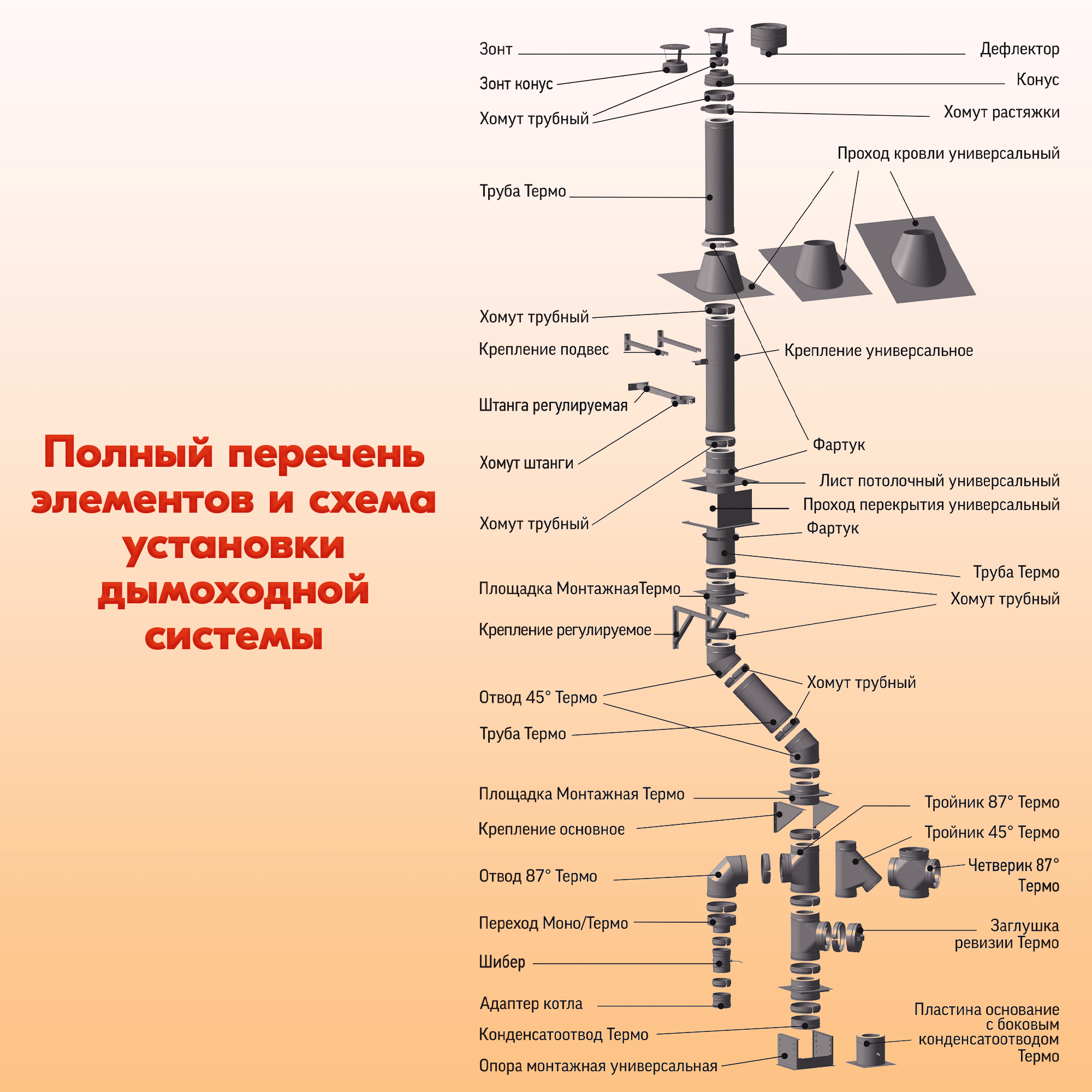 В нашем магазине печей, котлов и дымоходов, кстати, уже имеются все комплектующие для монтажа системы отвода дыма: