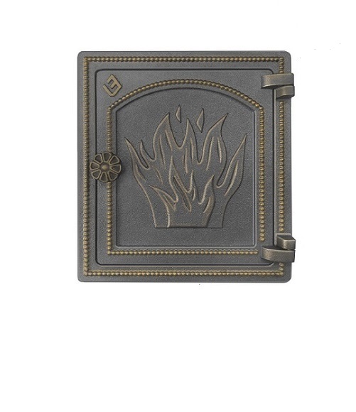 Дверца сделана из качественного чугуна, в кожухе используется металлический пруток с чёрной краской, устойчивой к температуре.