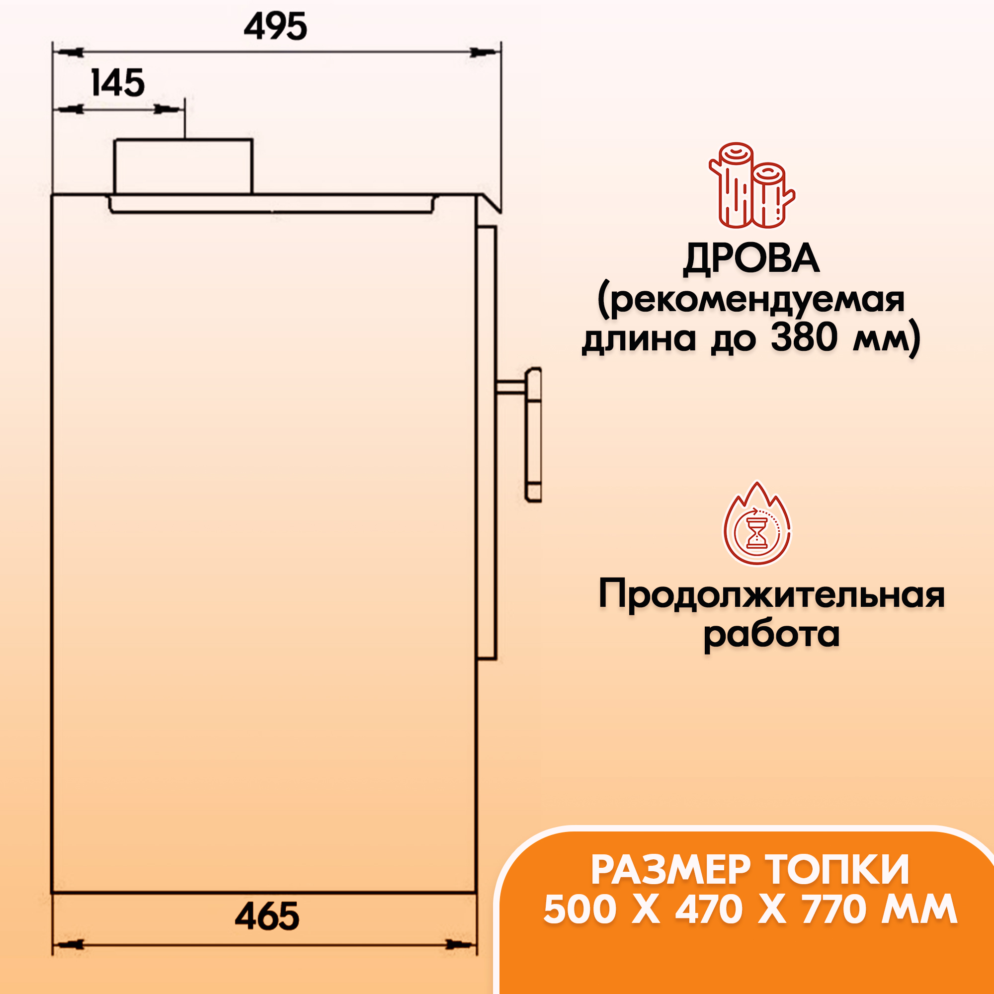 Боковые стенки металлической печи на дровах представляют собой конвекторы.