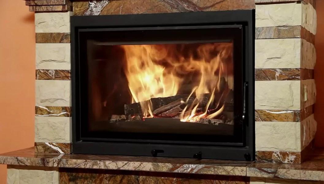 Дверь каминной топки декорирована плоским стеклом. Такие стекла делаются всего в 2 странах: Германии и Японии. Оно выдерживает температуру до 750 градусов. Но если ударить кочергой, то может треснуть. Через стекло любуются огнем и следят за прогоранием дров и подкладкой новых. Размеры стекла с учетом рамки: ширина 530 мм, высота 355мм.
